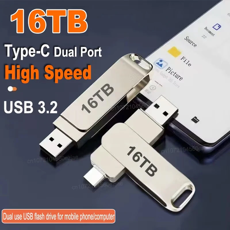 16TB USB 3.2 Flash Drives High Speed Transfer Metal Pendrive Memory Card Pendrive Flash Disk Memoria Waterproof Stick NEW